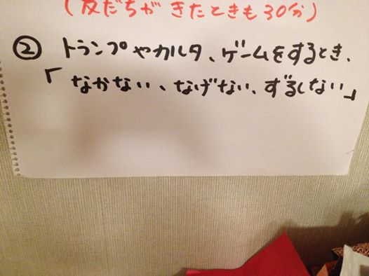 ど~やら、お子さん達がすごく負けず嫌いらしく、じゃんけんですら全員、遅出しで勝負にならず、ゲームで負けが見えてこようものなら、そら~ひどいみたいです。