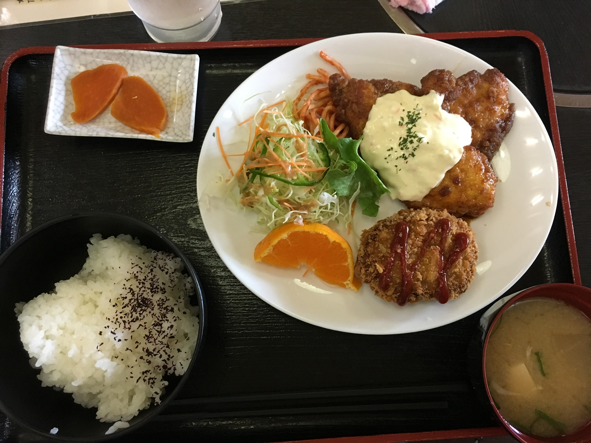 翌日の昼も名物チキン南蛮。&高千穂牛のコロッケ。