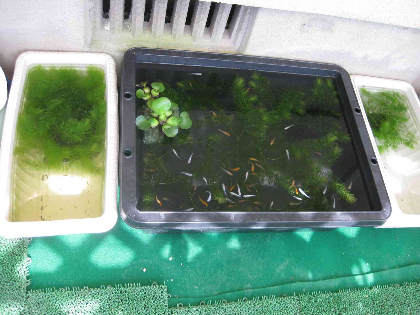 左隣はメダカ赤ちゃんで右側は金魚(土佐錦赤ちゃん)です![]()