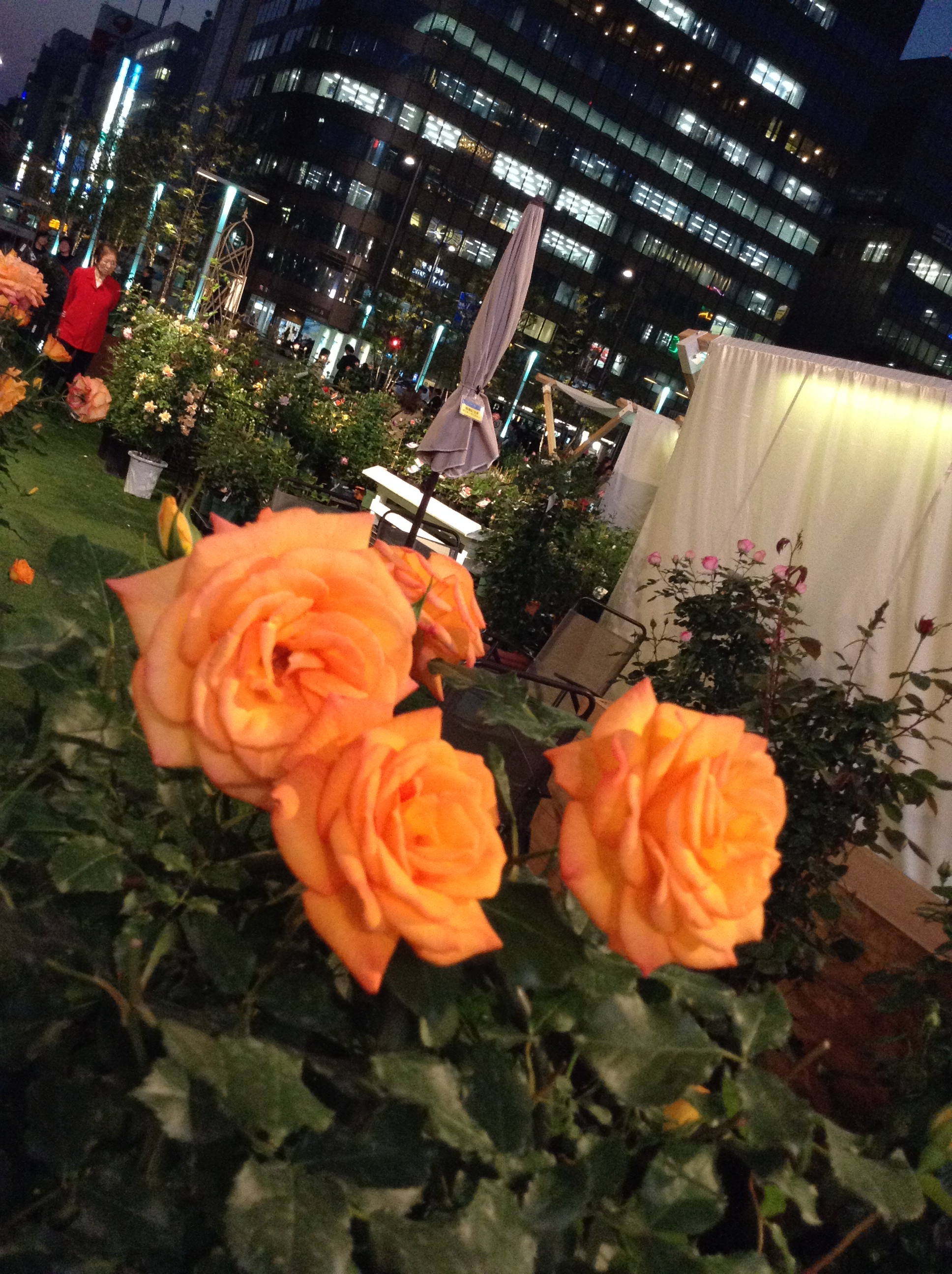 先日、仕事帰りに博多駅前大屋根広場で開催中の「九州バラ祭」に行ってきました