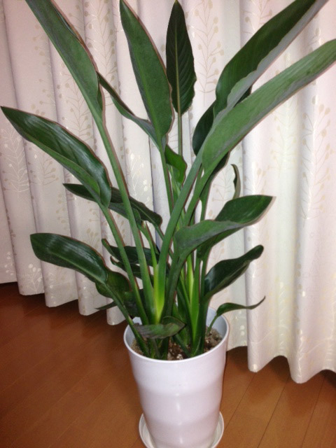 この観葉植物の名前は確か・・・ストレチア・・て言ってたっけ・・