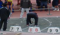 砲丸が落ちたところに旗をハンマーで打ち込んで、記録を更新したら打ち変える・・・・・といった流れです。