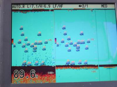 魚はいっぱい魚探に写っている