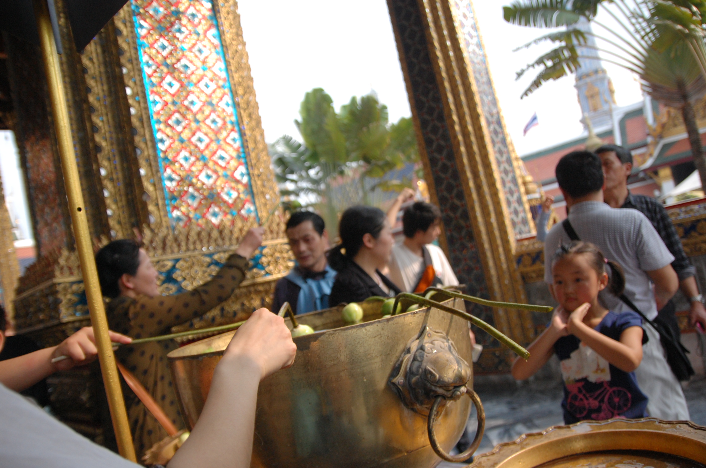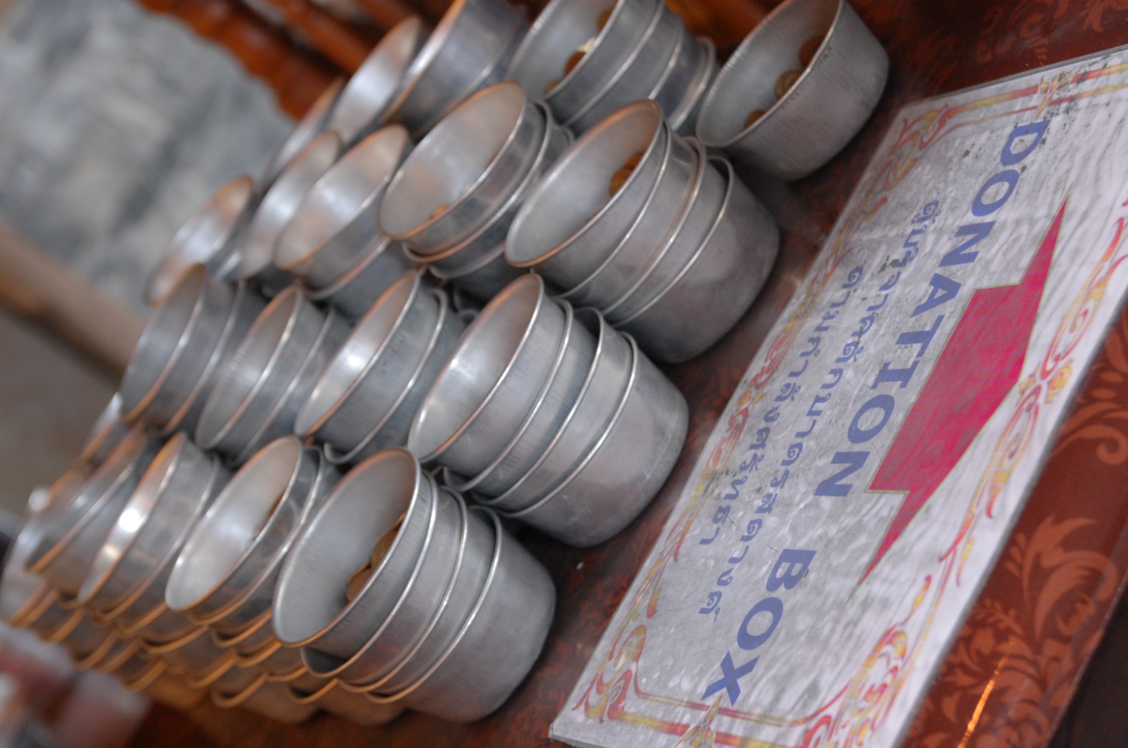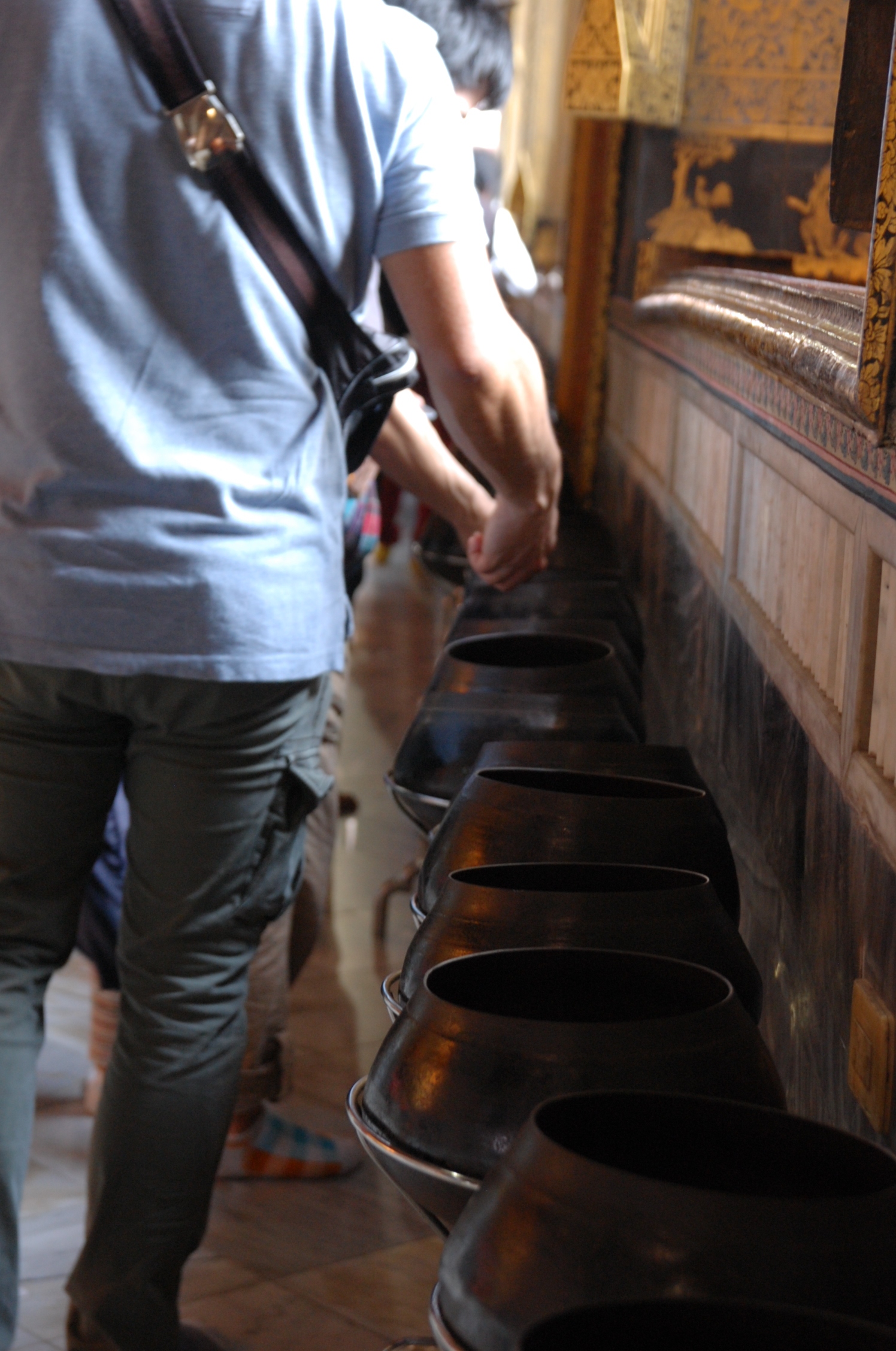 裏には108の銅壷が並んでいて、20B(約60円)で硬貨を購入
