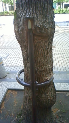 これは歩道に街路樹が植樹されていましたが、成長により樹木保護用の支柱に