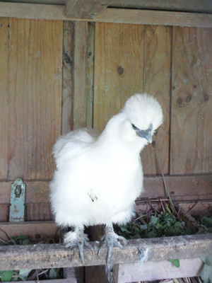 この白い鳥、烏骨鶏ですよ