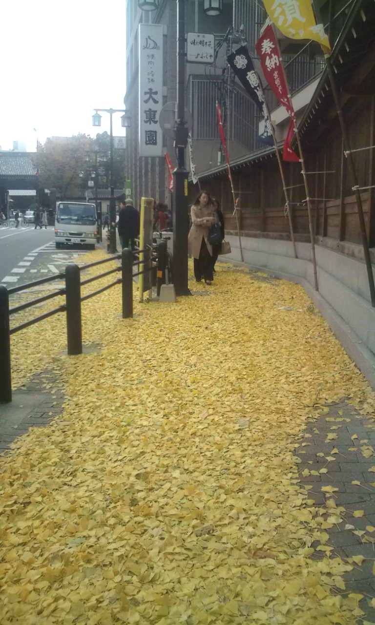 今朝の強風で、大銀杏がほとんど散ってしまいました