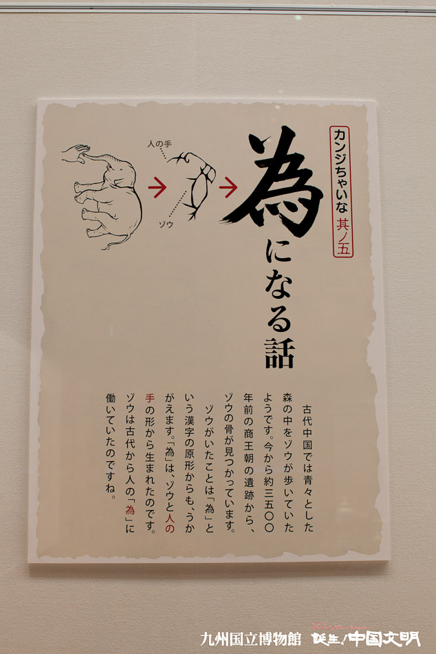 」という題名の下、漢字の語源の説明パネルがあります。これがまたおもしろいんです