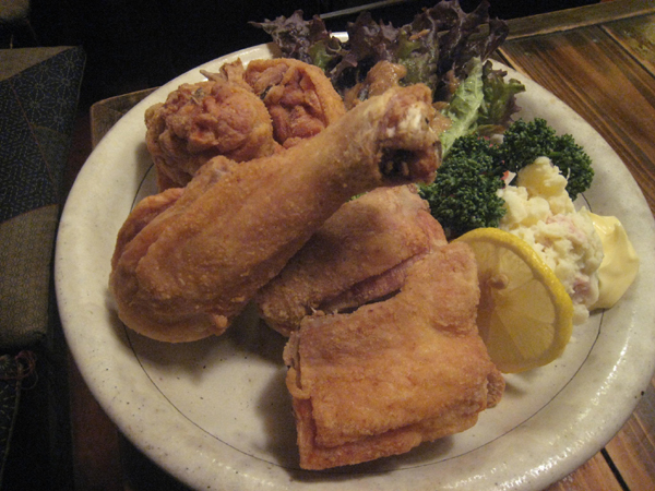 かき揚げは、きのこと春菊をあげたもの。大きくてパリパリです