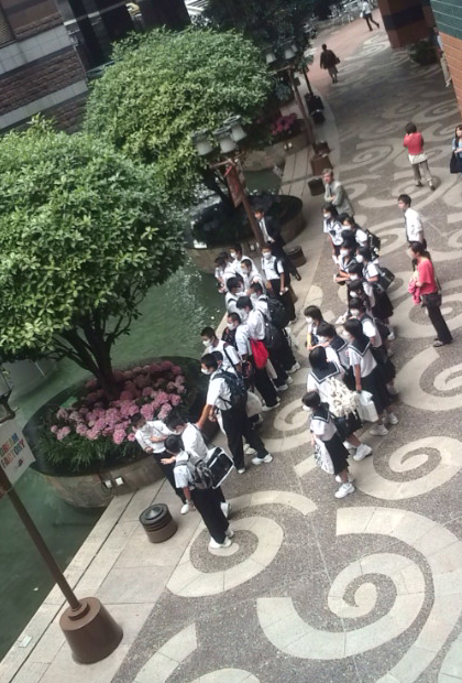 満腹になって、会社まで帰ろうかと歩いていると、修学旅行生の集団が